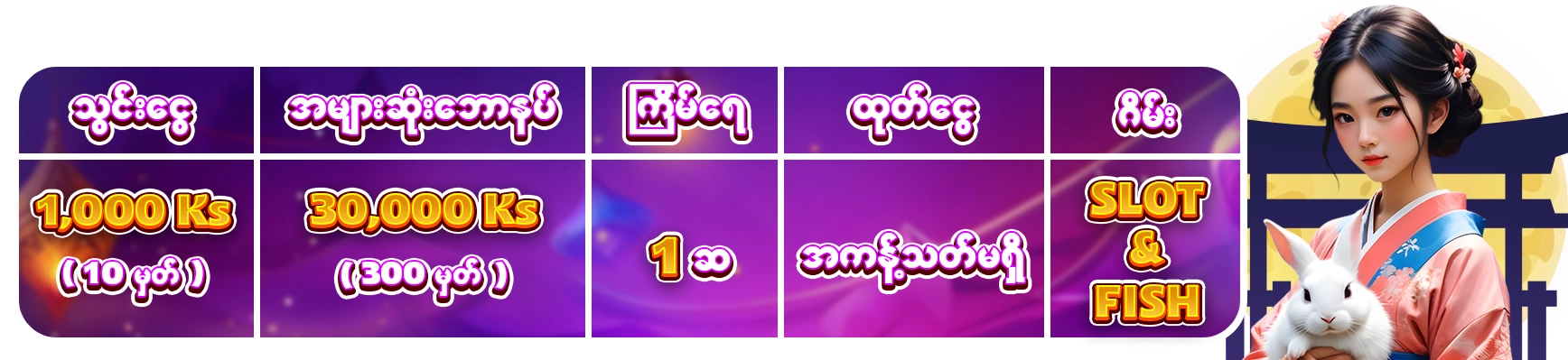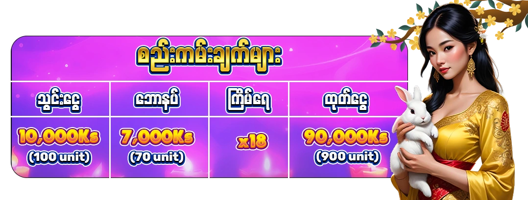 🥇 ပထမဆု 300,000Ks (3,000မွတ္)