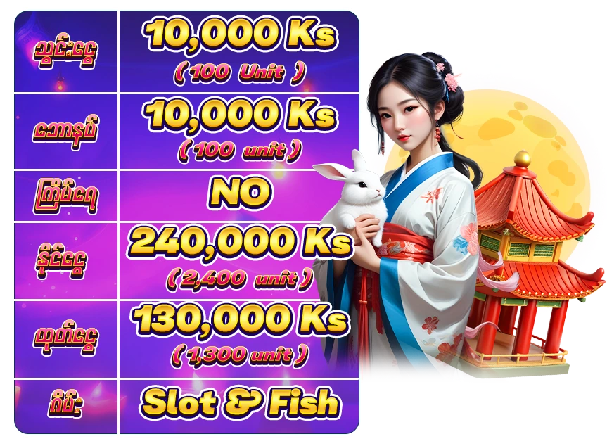 🥇 ပထမဆု 100,000Ks (1,000မွတ္)
